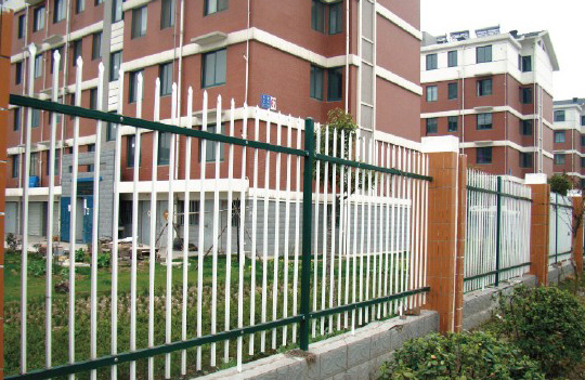 雙橫桿鋅鋼護欄是新型靜電噴涂柵欄的其中一款。根據柵欄的材質可以叫做鋅鋼護欄、靜電噴涂金屬護欄、鋼管護欄、方管組裝圍欄等。組裝護欄的用途廣泛,被大量應用。因其安全性高、自潔性好、防腐能力強、使用年限長等優點多被用于各縣市新建的工業園周圍作為圍墻。小區建設和其他建筑上也都被廣泛應用。組裝護欄是熱鍍鋅管經過各種沖壓,然后表面磷化處理,最后進行靜電噴涂顏色。靜電噴涂處理的顏色光亮,增加了柵欄本身的美觀性。